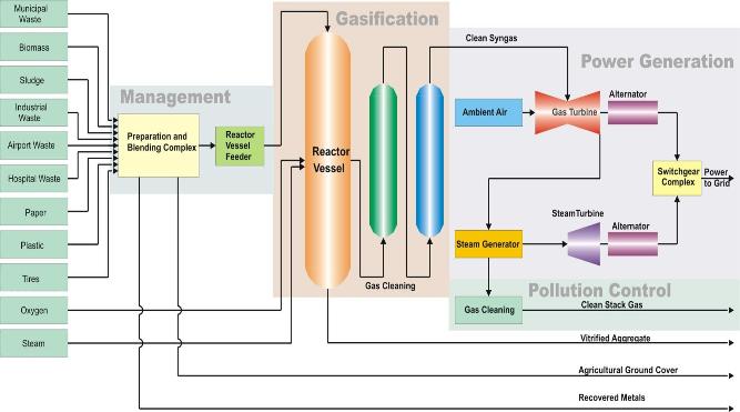 useful product leaving no residue to be buried in landfills. Waste is converted to steam, electricity, vitrified